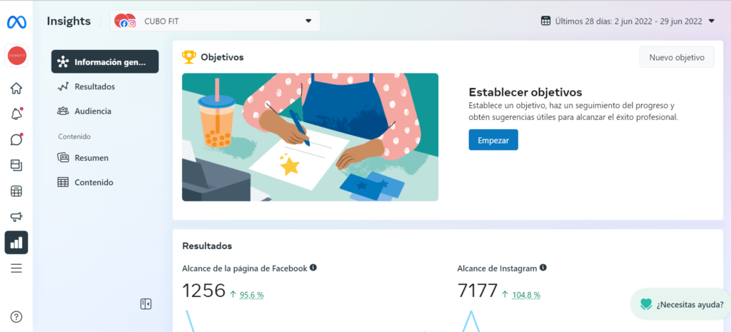 - Podemos ver información general, resultados, audiencia, resumen o resultados de contenido.