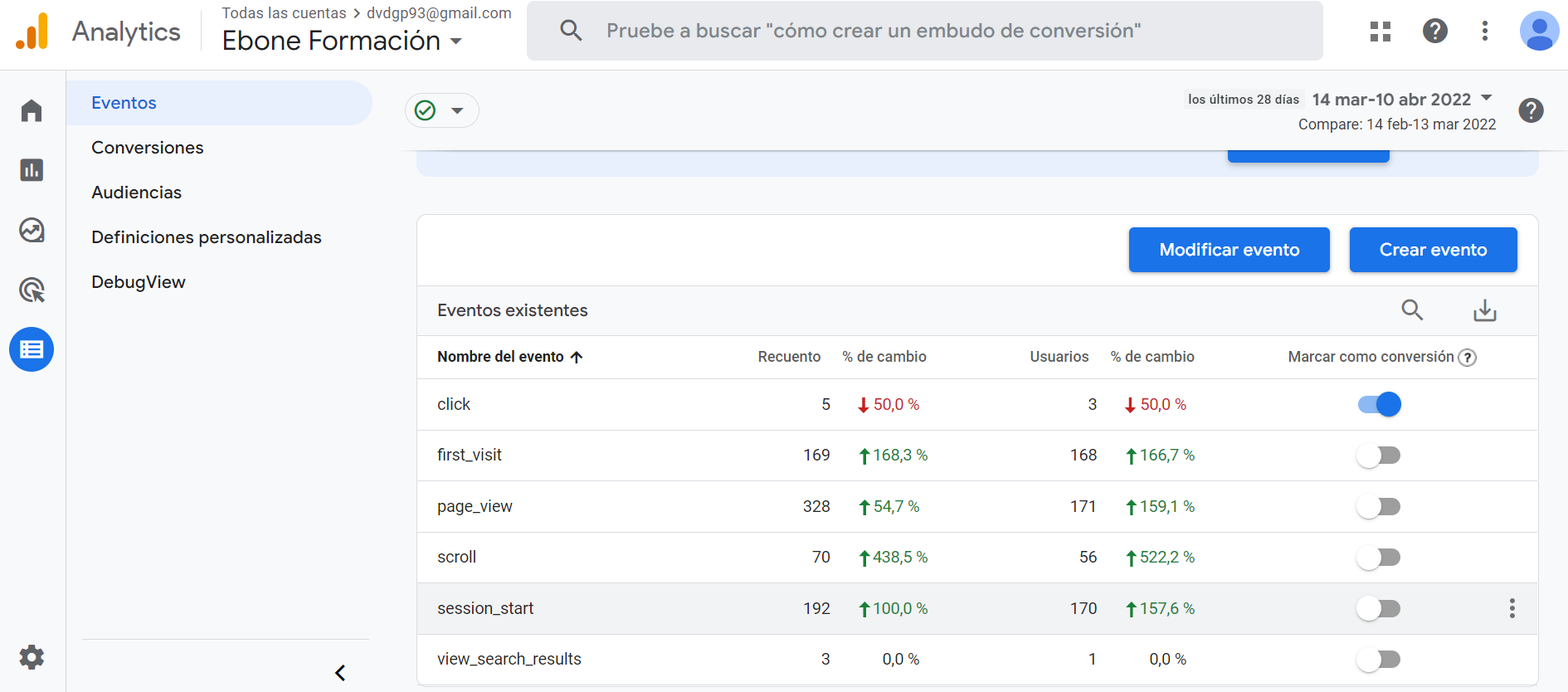 Un evento sucede con una llamada a la acción situado en alguna de las páginas de nuestra web. La reproducción de un video, la cumplimentación de un formulario o la activación de un banner son eventos que podemos dar de alta en el sitio y medir los resultados que está produciendo con nuestras visitas.