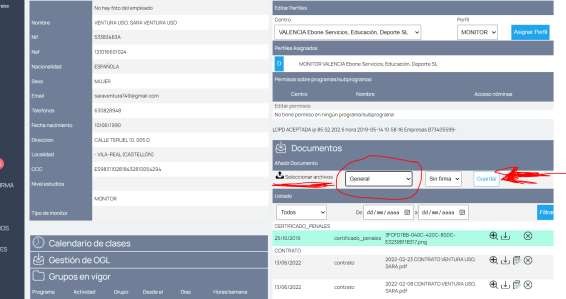 Una vez tenemos al trabajador creado tenemos que subir su documentación original:
