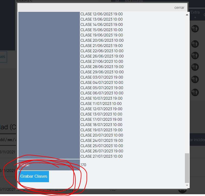 saldrá el listado de clases …. Seguidamente es Grabar.