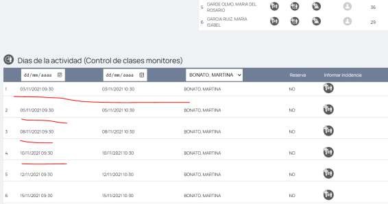 - Nos indica que vamos añadir días a la monitora Martina. ( podemos tener activos si queremos añadir el mismo horario a todos los monitores … podemos hacerlo haciendo click en todas los muñecos que queremos meter el mismo horario