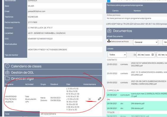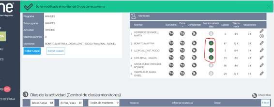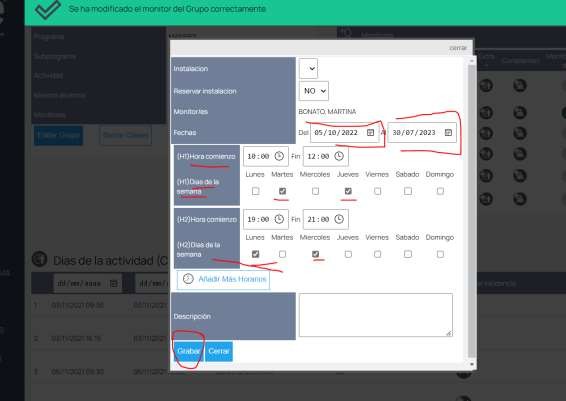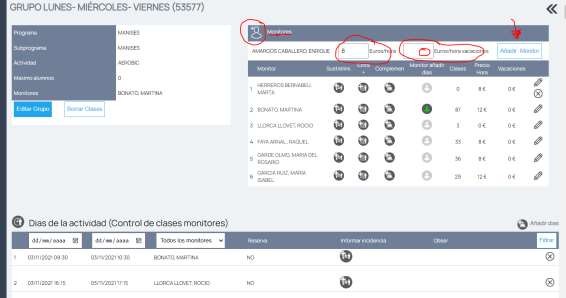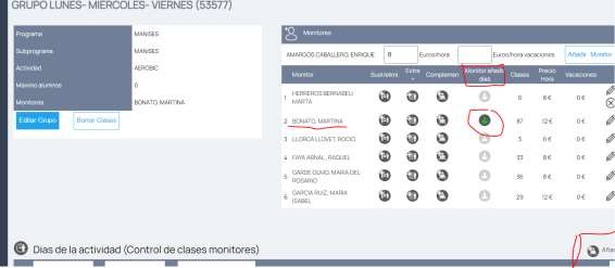Vamos a entrar en el grupo y asignar horario en este caso a varias monitoras :