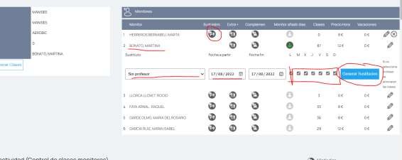 - En este caso sólo vamos a añadir días a Martina. Por tanto volvemos a clikar para dejar sólo activo un monitor. Y le damos añadir días: