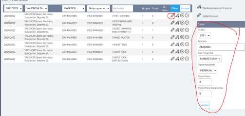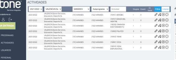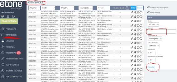 Si no es vuestro primer año y el programa ya estaba creado, sólo tendréis que iros ACTIVIDADES CURSO 2021/2022 y ya estarán vuestras actividades creadas y con los trabajadores que había en ellas. Por defecto os sale en la página inicial el curso 22/23… ya que es nuevo curso. Si tenéis tiempo podéis crearlo nuevo y si preferís el que tenéis recordar mirar en curso 2021/2022