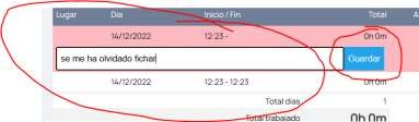 – Hacer el seguimiento de los fichajes de cada monitor/monitora. ( estamos viendo que la gente no está fichando o no se le está haciendo hincapié que tiene que fichar sus horas) RECORDAR QUE para una posible inspección tiene que estar los fichajes de cada trabajador por día y hora trabajado y si se les olvida fichar comunicarlo en incidencias IMPORTANTE QUE REVISÉIS ESTO . LO TENÉIS EN LAS INCIDENCIAS