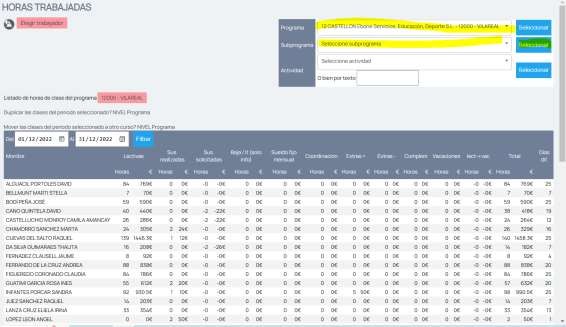 En horas mensuales podemos visualizar a todos los trabajdores de cada programa y ver si está todo correcto.